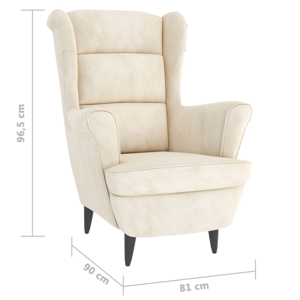 Kremowy aksamitny fotel Samuel pozwoli urozmaicić wygląd wnętrza, tworząc w nim miły i przytulny klimat. Jedną z jego cech jest solidność wykonania. Konstrukcja fotela wykonana została z wysokiej jakości, wytrzymałej płyty meblowej połączonej trwale przy pomocy wkrętów i metalowych zamków meblowych. Tapicerowany jest warstwą pianki poliestrowej o wysokim stopniu sprężystości. Obicie stanowi tkanina zamszowa, która wyglądem przypomina aksamit. Na oparciu znajdują się dwa ozdobne przeszycia wzmacniające tapicerkę.