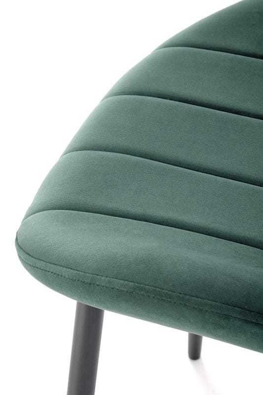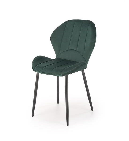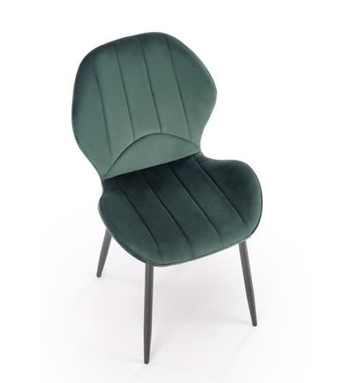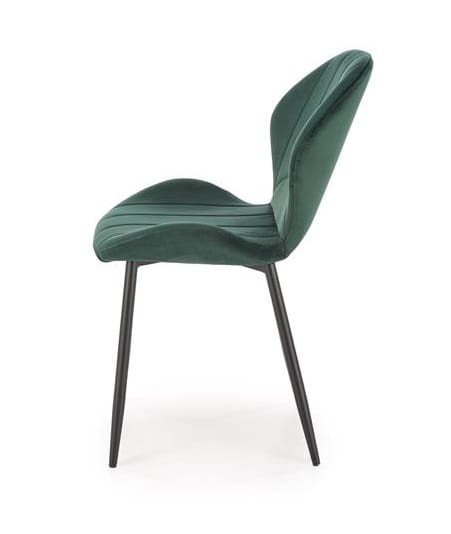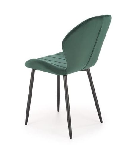 Największą ozdobą krzesła Mauro jest tkanina velvet w głębokim, butelkowozielonym odcieniu, która wprowadza do wnętrza nutę luksusu i wyrafinowanego stylu. Miękki w dotyku welur podkreśla ekskluzywny charakter mebla, a subtelne pionowe przeszycia na oparciu i siedzisku dodają całości geometrycznej harmonii, czyniąc krzesło nie tylko funkcjonalnym, ale również dekoracyjnym elementem przestrzeni.