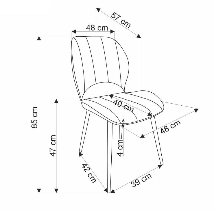 - Wymiary: szerokość - 48 cm, głębokość - 57 cm, wysokość całkowita - 85 cm, wysokość od podłoża do siedziska - 47 cm