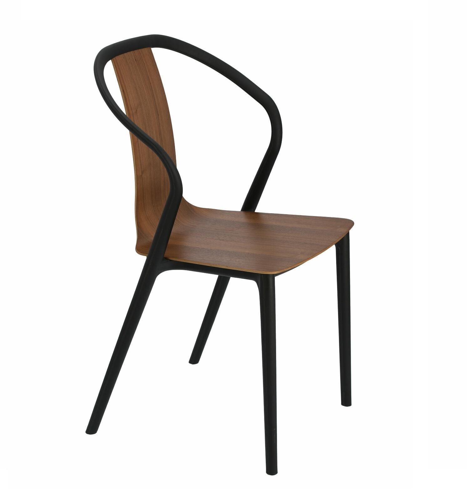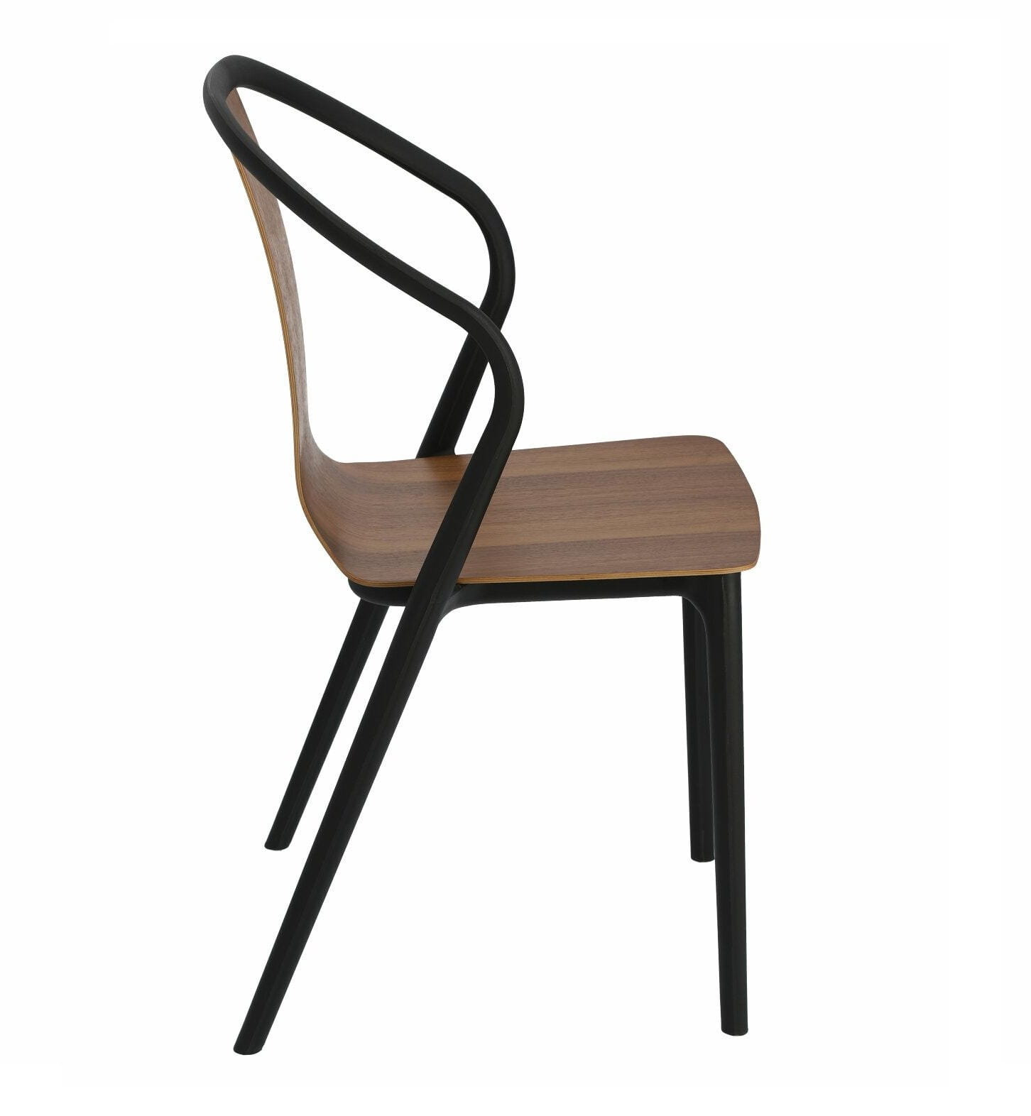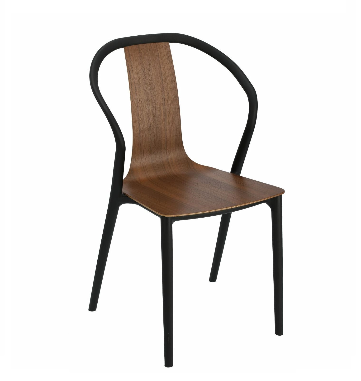Model ten ma w sobie klasę. Świetna linia smukłych nóg, gdzie tylne łączą się z fantazyjnym oparciem nadaje temu modelowi elegancji. Idealnie kontrastują ze sobą poszczególne elementy siedziska. Połączenie czerni i orzecha nigdy nie zawodzi. Szczególnie, że kolor wykończony jest w półmacie, pogłębiając szykowność.