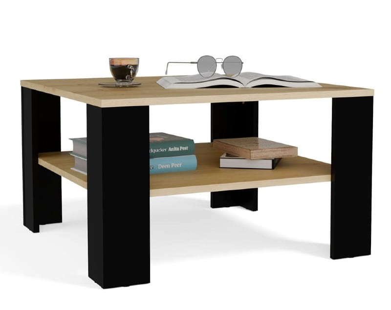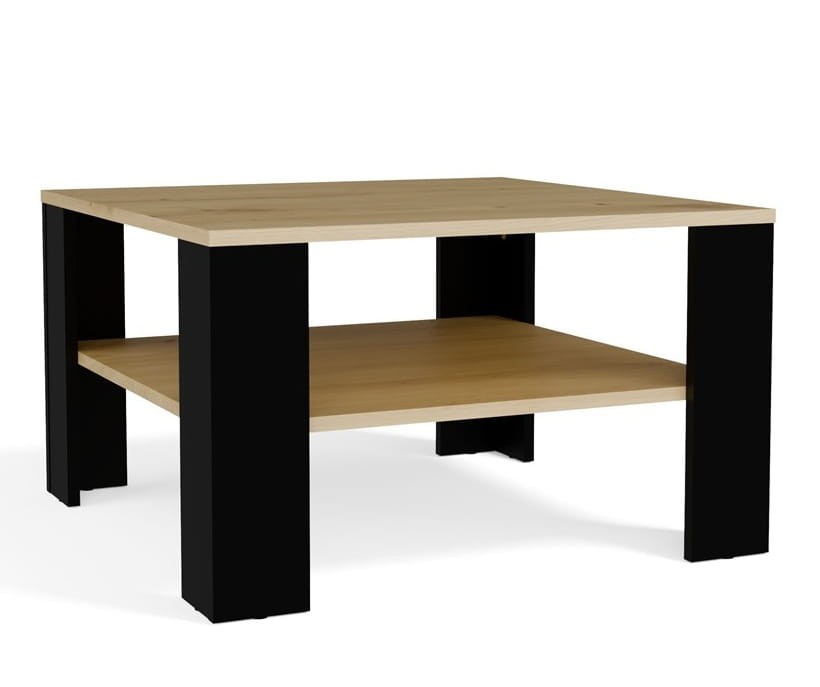 Kwadratowa ława do salonu z półką artisan/czerń