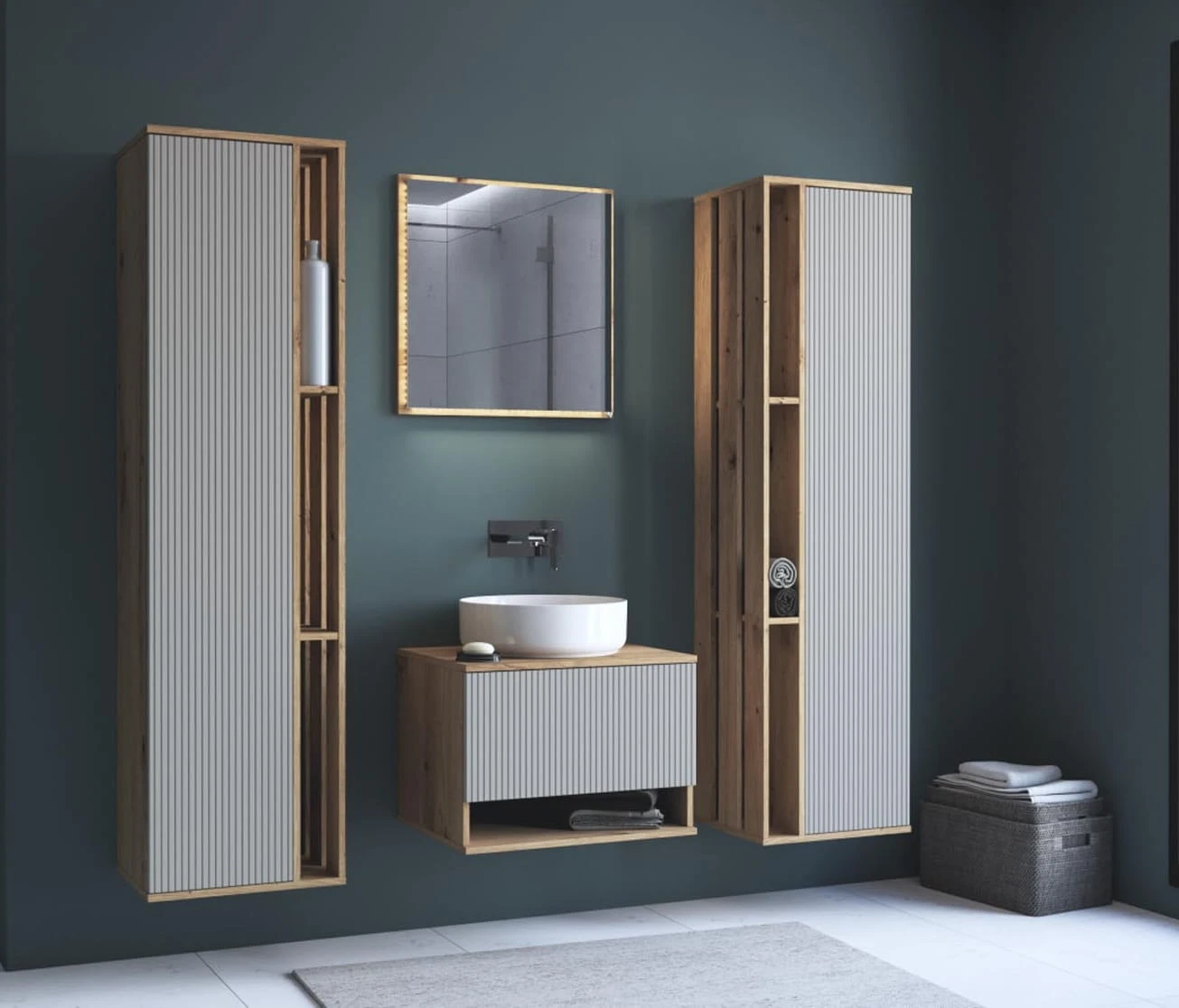 Lustro Viola jest częścią nowoczesnej kolekcji mebli łazienkowych o tej samej nazwie, której cechą charakterystyczną jest połączenie ciepłych, drewnianych korpusów w kolorze dębu artisan z subtelnymi, kaszmirowymi frontami. Dzięki temu, zestawienie to wprowadza do wnętrza harmonię i elegancję, tworząc spójny, nowoczesny wystrój łazienki. Wybierając lustro Viola, inwestujesz w ponadczasowy design i codzienną wygodę, która podnosi komfort życia.