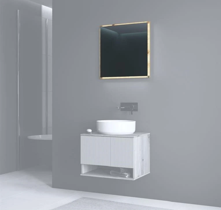 Lustro łazienkowe Viola to elegancki dodatek, który doskonale uzupełni każdą nowoczesną łazienkę. Wykonane na solidnej płycie meblowej laminowanej w ciepłym odcieniu dębu artisan, lustro nie tylko zachwyca swoim minimalistycznym, a jednocześnie wyrazistym designem, ale również dodaje wnętrzu unikalnego charakteru. Idealne proporcje – 60x60 cm – sprawiają, że lustro sprawdzi się zarówno w mniejszych, jak i przestronnych łazienkach, oferując użytkownikowi maksymalny komfort codziennego użytkowania.