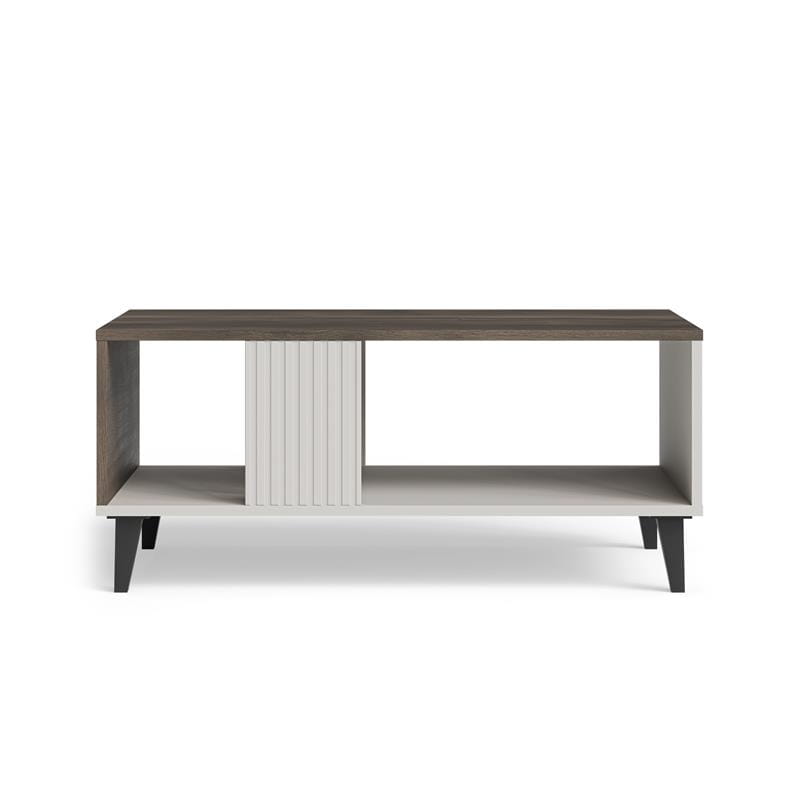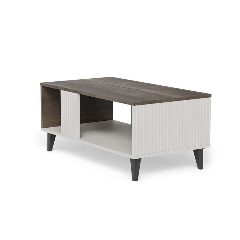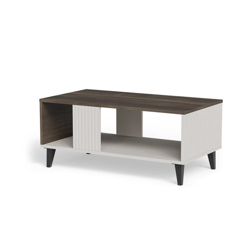 Elegancka ława do salonu kaszmir z półką i nutą orzecha