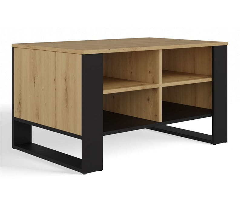 Przestronny blat ławy Derni III zapewnia wystarczająco dużo miejsca na filiżanki z kawą, herbatę czy talerze z ciastem podczas spotkań z przyjaciółmi. Cztery praktyczne półki pod blatem to doskonałe miejsce do przechowywania pilotów, czasopism lub aktualnie czytanych książek, dzięki czemu Twój salon zawsze będzie wyglądał schludnie i zorganizowanie.