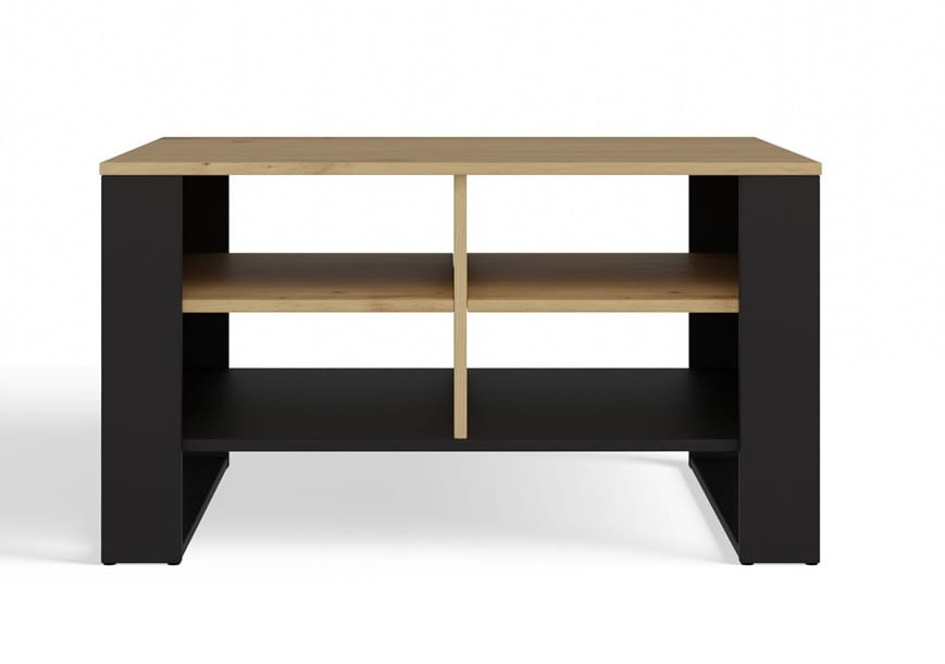 Ta ława kawowa jest bardzo funkcjonalna - blat i półki zapewniają mnóstwo miejsca do użytkowania i przechowywania. Wykonana jest z materiałów odpornych na zarysowania w modnym designie pasującym do różnych wnętrz. Doskonale odnajdzie się i w tych dużych i mniejszych salonach nie przytłaczając swoimi gabarytami.