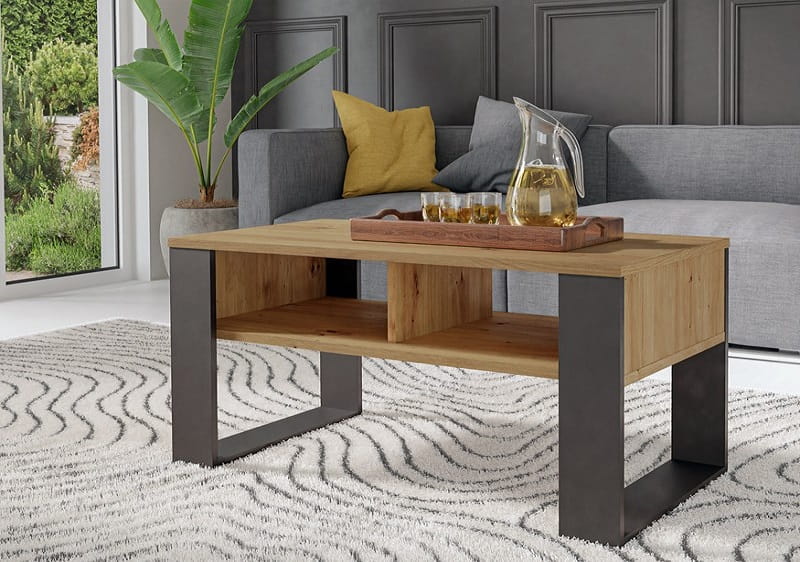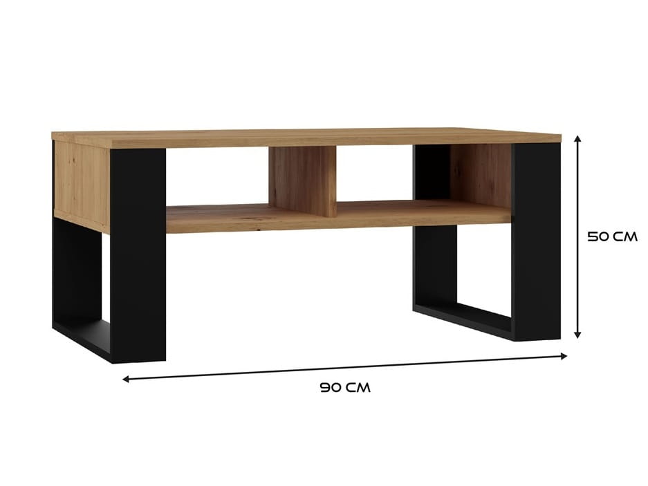 Oferowana ława do salonu nadaje się do wszechstronnego użytku. Na Państwa uwagę, z całą pewnością, - zasługuje gładki blat niebagatelnych rozmiarów 90x58cm. To znacznie więcej niż oferuje przeciętny stolik kawowy, dlatego można spodziewać się tu większej funkcjonalności. Szczególnie, że designerzy zadbali o coś więcej niż interesujące wzornictwo. Stolik ten posiada sporo miejsca do przechowywania np. książek lub czasopism. Jednocześnie, na dolnych półkach ustawić można elementy ozdobne, odłożyć podręczne gadżety.