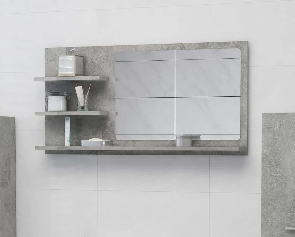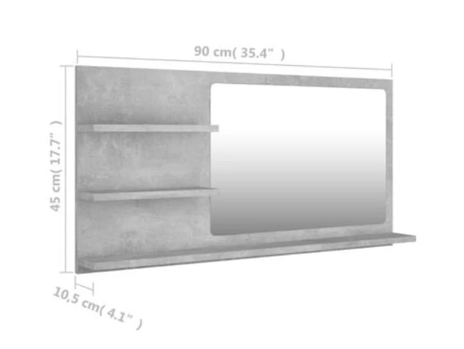Wiszące lustro łazienkowe z półkami beton