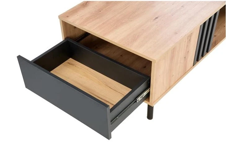 Ława do salonu z szufladą Sonia to połączenie nowoczesnego sznytu z praktycznymi rozwiązaniami, które spełnią oczekiwania nawet najbardziej wymagających użytkowników. Ten funkcjonalny mebel w stylu loft zachwyca nie tylko przemyślaną konstrukcją, ale także starannie dopracowanymi detalami, które czynią go wyjątkowym elementem wyposażenia każdego wnętrza.