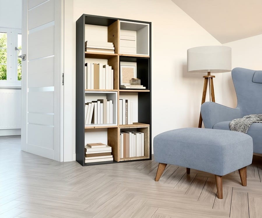Nasz mebel wykonany jest z laminowanej płyty wysokiej jakości, co zapewnia mu to doskonałą stabilność i trwałość. Półki w rozmiarze 34,5x34,5 cm gwarantują temu meblowi naprawdę sporą pojemność! Umożliwiają one przechowywanie i segregację! Można trzymać tu bibeloty, galanterię, bieliznę, zabawki albo kosmetyki. A gdy regał umiejscowiony jest w gabinecie - również dokumenty. Tak naprawdę zależy to od przeznaczenia i miejsca, w którym ma on spełniać swoje funkcje! A tutaj pomysłów można mieć naprawdę mnóstwo!
