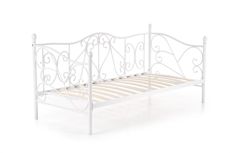 Stylowe łóżko ze stelażem dla dzieci i młodzieży cechuje się praktycznością i niebanalnym designem. Utrzymany w romantycznej stylistyce model Scarlett posiada interesujące zdobienia w iście czarującym stylu i estetyczny wygląd. Takie metalowe łóżko młodzieżowe sprawdzi się w pokoju urządzonym w nurcie scandi, we wnętrzu prowansalskim, ale i w innych gustownych przestrzeniach (nowoczesnych, vintage). Łóżko pod materac 90 x 200 cm wykonane jest ze stali malowanej proszkowo, dzięki czemu ma wyjątkowo trwałą konstrukcję. Wystarczy dobrać do niego dobrej jakości materac i z pewnością posłuży latami.