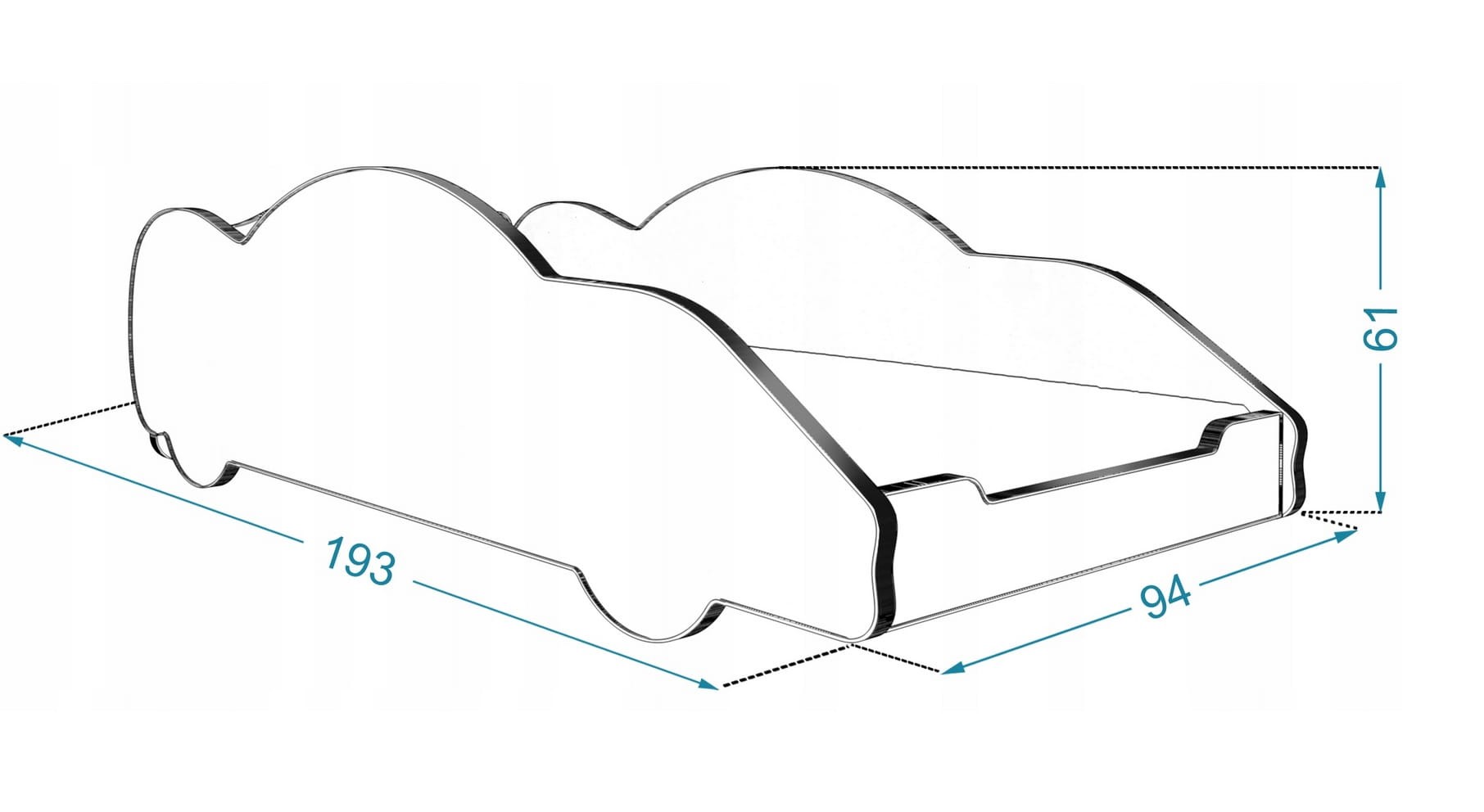 - Wymiary: długość całkowita - 193 cm, szerokość całkowita - 94 cm, wysokość - 61 cm, powierzchnia spania 180x90 cm