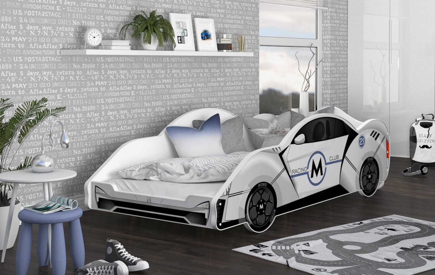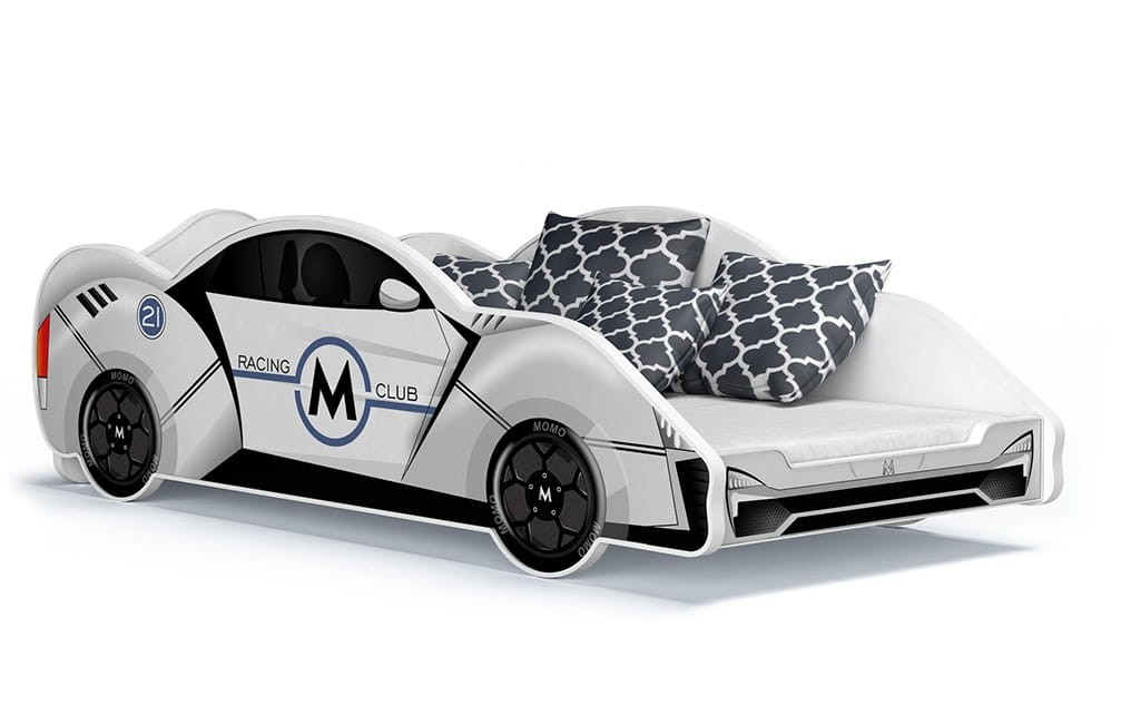 Jednoosobowe łóżko dziecięce samochód wyścigowy odznacza się wyglądem, wygodą i co istotne - solidnym wykonaniem. Zrobione z laminowanej płyty meblowej, zabezpieczone jest z brzegu miękką, plastikową okleiną. Łóżko wyposażyliśmy w stelaż flex, a także w komfortowy materac piankowy o twardości H3. Pomimo, iż wygląda jak pojazd dla małego kierowcy - łóżko zaprojektowano przede wszystkim z myślą o komfortowym wypoczynku dziecka. Ma klasyczny szkielet, a specjalnego wizerunku nadaje mu zdobienie ramy.