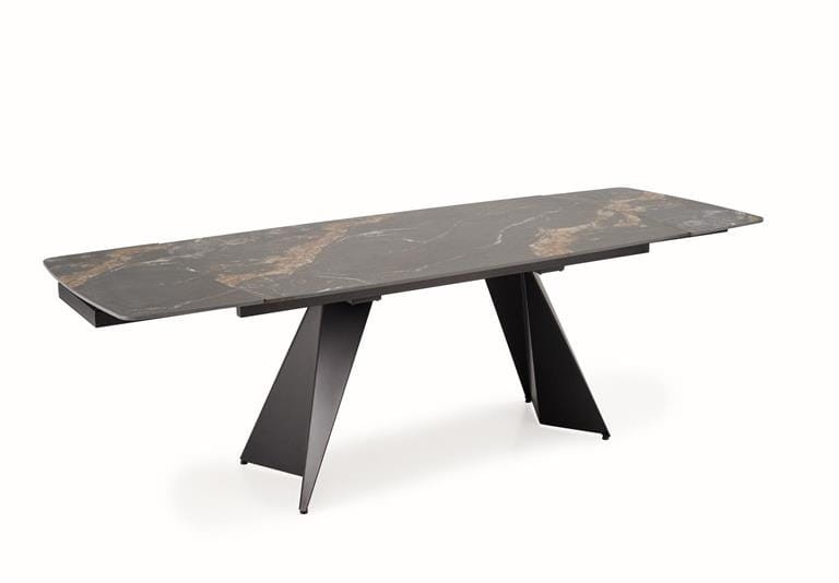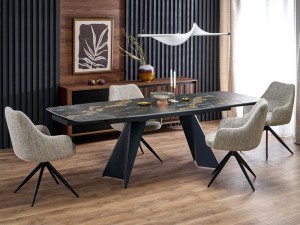 Podstawa stołu Armani to połączenie solidności konstrukcyjnej z wyrazistym, nowoczesnym designem. Nogi wykonane ze stali malowanej proszkowo w kolorze czarnym tworzą geometryczną, minimalistyczną formę, która nadaje całości lekkości wizualnej i jednocześnie gwarantuje stabilność, jakiej potrzebujesz od mebla tej klasy. Czarna stal to materiał, który doskonale komponuje się z czarnym marmurem blatu, tworząc spójną, elegancką całość, w której każdy detal jest przemyślany i dopracowany. Ta kombinacja sprawia, że Armani wygląda jak mebel z wyższej półki - taki, który równie dobrze pasowałby do luksusowej restauracji, eleganckiej sali konferencyjnej czy artystycznego loftu, co do Twojej jadalni.