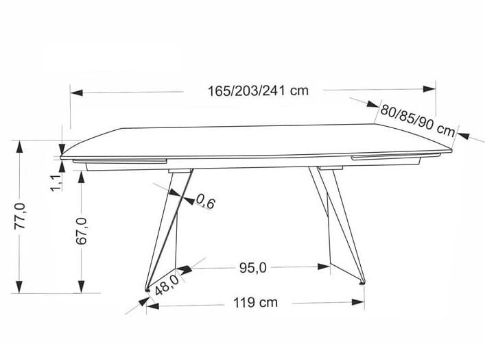 - Wymiary: długość - 165÷241 cm, szerokość - 90 cm, wysokość - 77 cm, waga - 123 kg