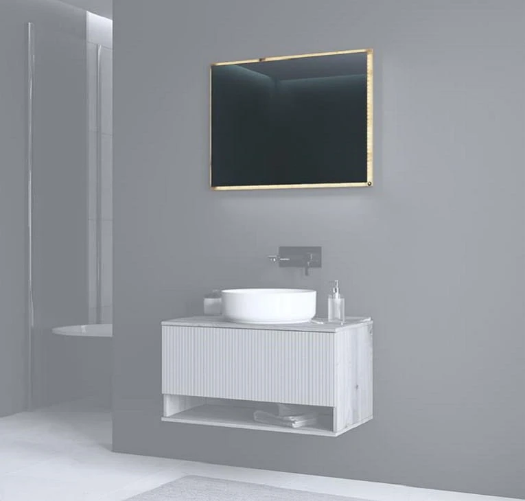 - Materiały: płyta meblowa laminowana, lustro, LED