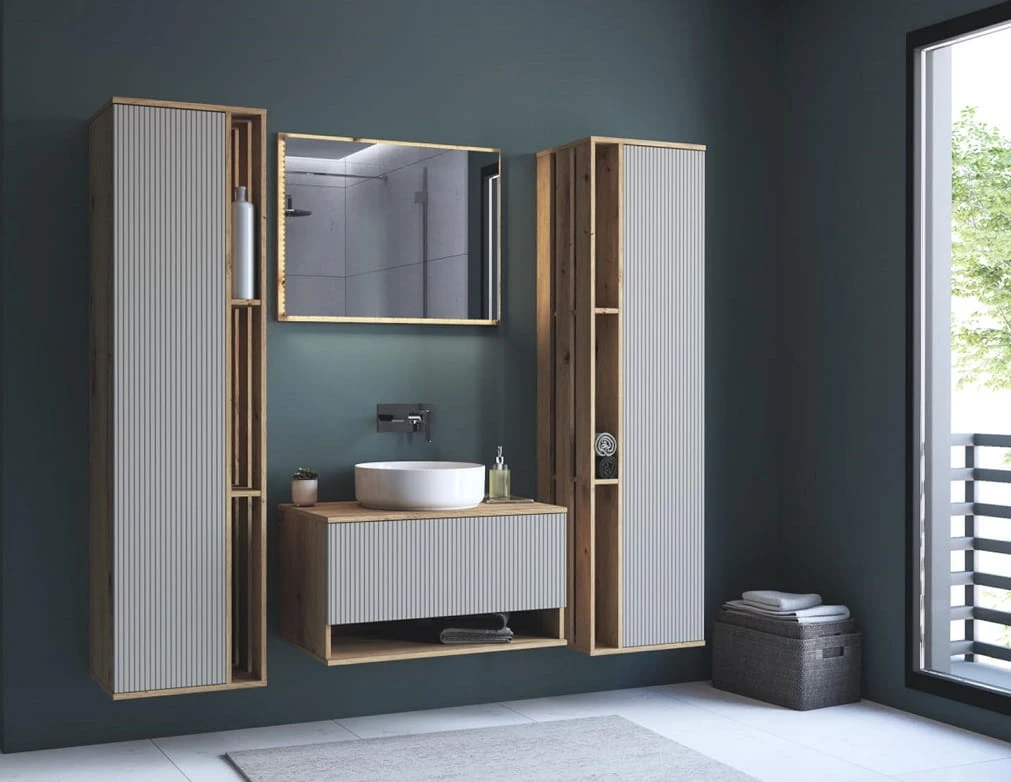 Lustro łazienkowe Viola to elegancki dodatek, który doskonale uzupełni każdą nowoczesną łazienkę. Wykonane na solidnej płycie meblowej laminowanej w ciepłym odcieniu dębu artisan, lustro nie tylko zachwyca swoim minimalistycznym, a jednocześnie wyrazistym designem, ale również dodaje wnętrzu unikalnego charakteru. Idealne proporcje – 80x60 cm – sprawiają, że lustro sprawdzi się zarówno w mniejszych, jak i przestronnych łazienkach, oferując użytkownikowi maksymalny komfort codziennego użytkowania.