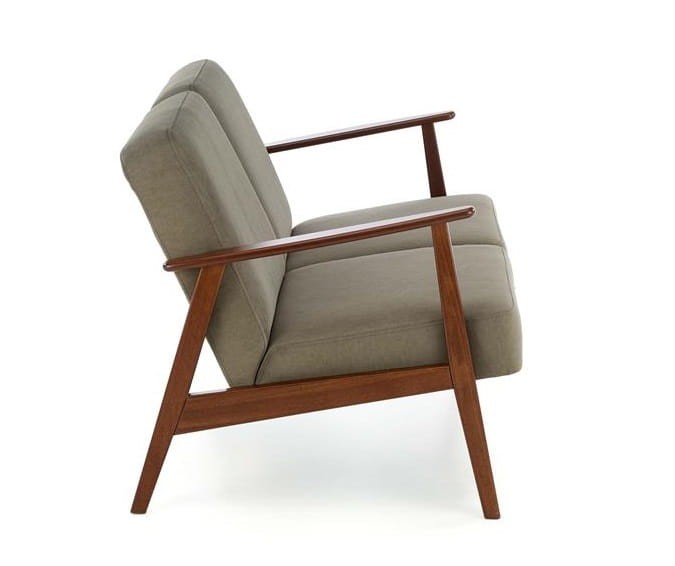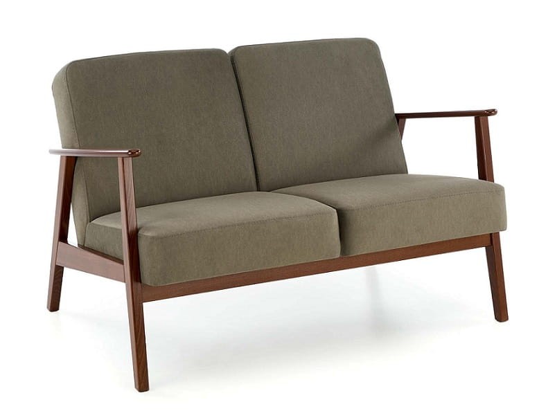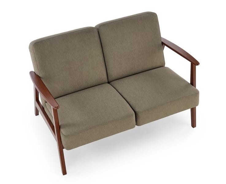 Sofa retro FOX II to fantastyczne rozwiązanie do kameralnych wnętrz, gdzie liczy się zarówno wysoka estetyka, jak i komfort użytkowania. Jej komfortowa tapicerka wykonana z wysokiej jakości tkaniny CASTEL w kolorze oliwkowym harmonijnie koresponduje z drewnianymi, bukowymi nóżkami w odcieniu ciemnego orzecha, tworząc wyrafinowaną, a przy tym subtelną kompozycję.