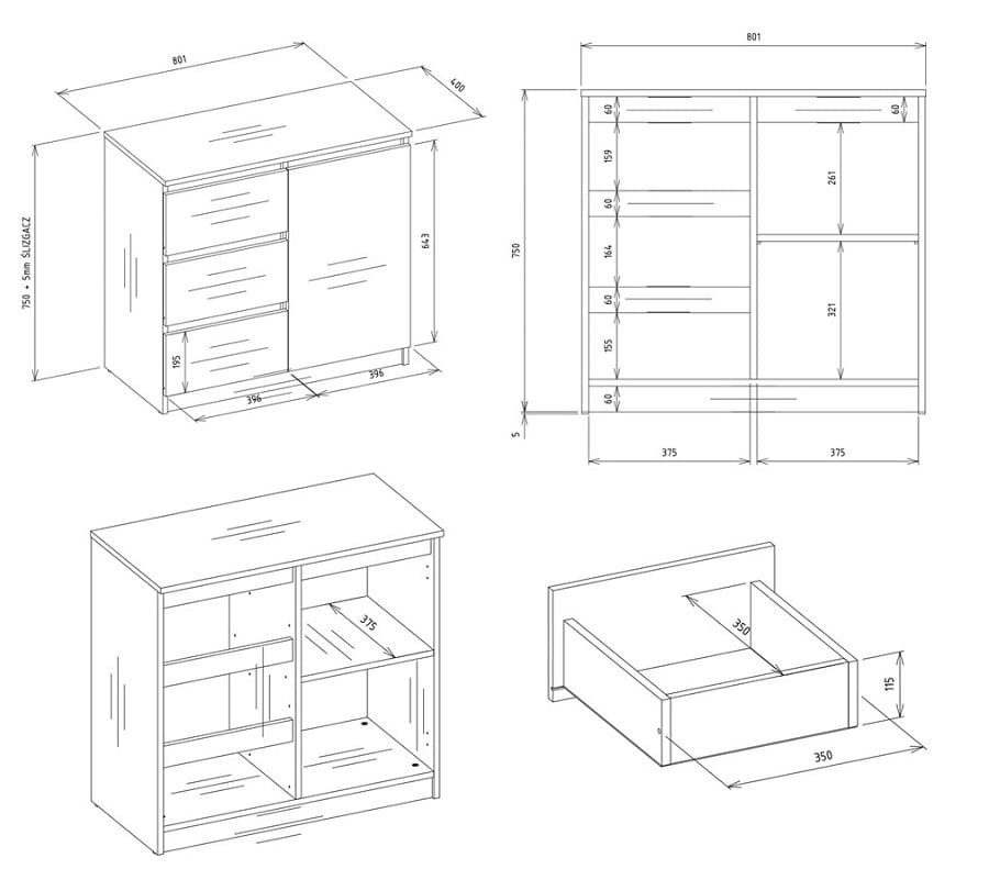 - Mebel do samodzielnego montażu.