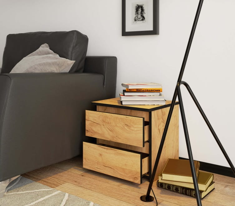 Szafka nocna to popularny typ mebla, który stawiamy tuż przy łóżku. Na jego blacie najczęściej umieszcza się lampkę, szklankę wody lub czytaną akurat książkę, zaś wewnątrz przedmioty ułatwiające odpoczynek oraz sen. Wszyscy, którzy szukają modnego i wygodnego stolika, powinni zwrócić uwagę na szafkę nocną Winma w kolorze dąb craft. Będzie się ona pięknie prezentować w każdej sypialni.