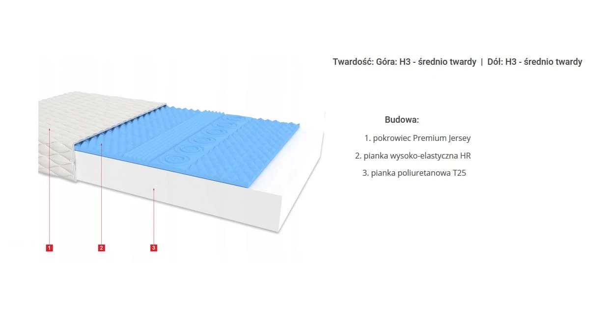 Materac piankowy 90x200cm twardość H3