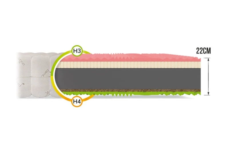 Za utwardzenie materaca po stronie H4 odpowiedzialny jest kokos. Jest to surowiec naturalny, 100% ekologiczny, pochodzący ze skorup orzecha kokosu. Włókna kokosowe są lekkie i przewiewne, a także bardzo trwałe i elastyczne, odporne na wilgoć i odkształcenia. Poprawiają cyrkulację powietrza wewnątrz materaca, dzięki czemu zapobiegają nadmiernemu poceniu się. Jest on szczególnie polecany klientom preferującym twardsze materace.
