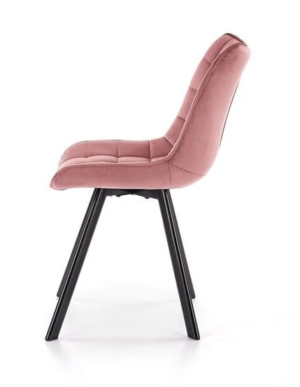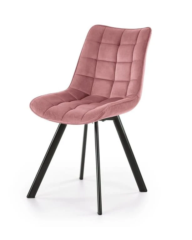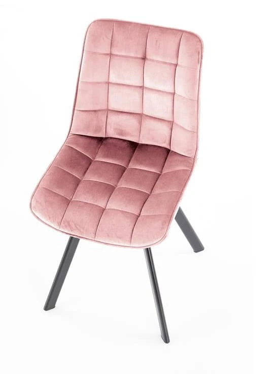 Metalowe krzesło do jadalni z pikowaną różową tapicerką
