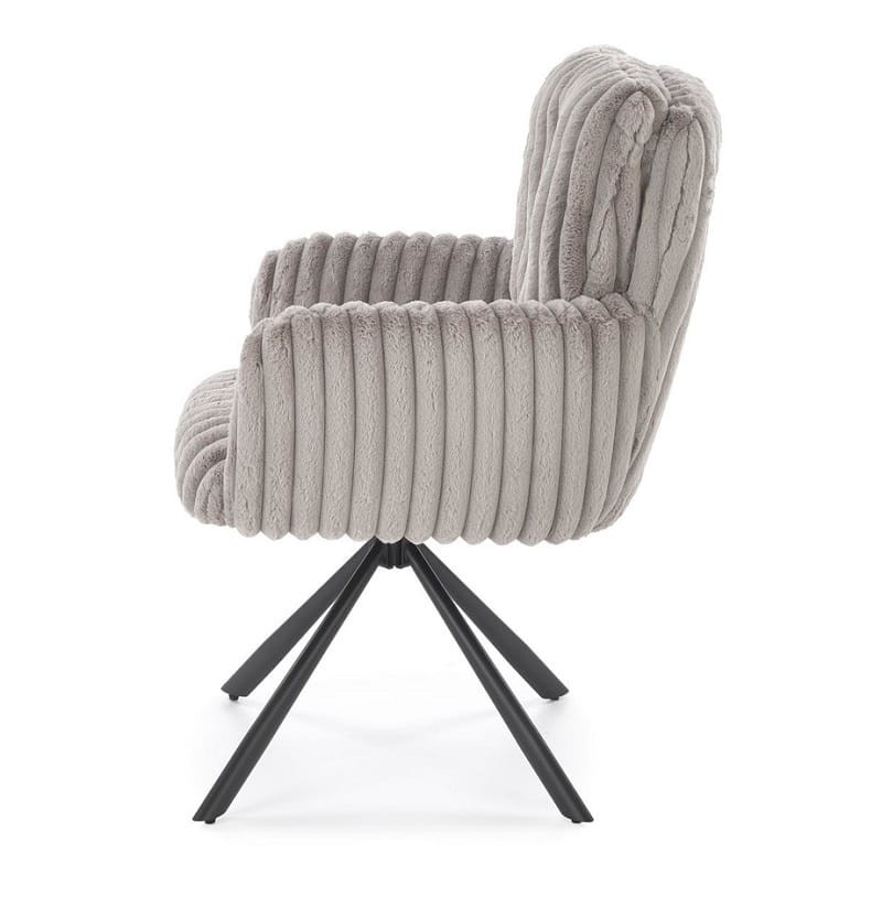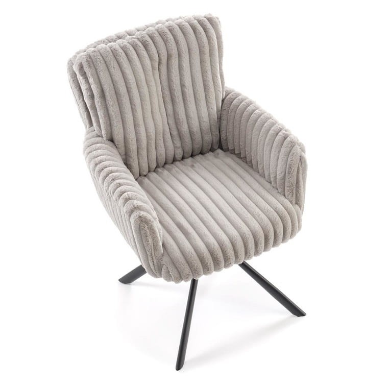 To modne krzesło do jadalni wyróżnia się nowoczesną formą, na prostych nogach o owalnym przekroju, które przypominają strukturę pajęczaka. Designerska tapicerka imitująca sztruks sprawia, że każde siedzenie staje się przyjemnością. Materiał Vito, z którego wykonano siedzisko, jest wyjątkowo miękki w dotyku, co gwarantuje komfort nawet podczas wielogodzinnych posiedzeń przy stole. Dodatkowo, wygodne podłokietniki pozwolą Ci zrelaksować ręce, co czyni to krzesło doskonałym wyborem na długie rodzinne obiady czy towarzyskie spotkania.