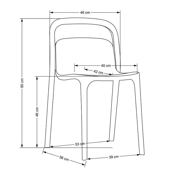 - Wymiary: wysokość - 80 cm, wysokość siedziska - 46 cm, szerokość - 46 cm, głębokość - 55 cm