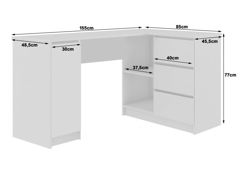 To właśnie ergonomiczne, narożne biurko komputerowe Eloo marki Deson.pl w kształcie litery L – gwarantuje wyższą funkcjonalność niż niejeden model klasyczny. Tutaj większy blat i łatwiejsza dostępność do poszczególnych elementów sprawiają, że wzrasta wygoda użytkowania. To dobra wiadomość dla gamerów, którzy cenią sobie biurka gamingowe stworzone z myślą o wielogodzinnym graniu. Dodatkowo, odpowiednią pozycję przy biurku zapewni regulowane krzesło, a jeszcze większy komfort można uzyskać dzięki dostępności specjalnie wyznaczonych stref na drukarkę i skaner. Młodzieżowe biurko komputerowe narożne gwarantuje odpowiednią ilość miejsca na niezbędne urządzenia peryferyjne. Z kolei obszerny blat odporny na ścieranie – przyczyni się do podniesienia komfortu pracy tak z laptopem, jak i z jednostką centralną.
