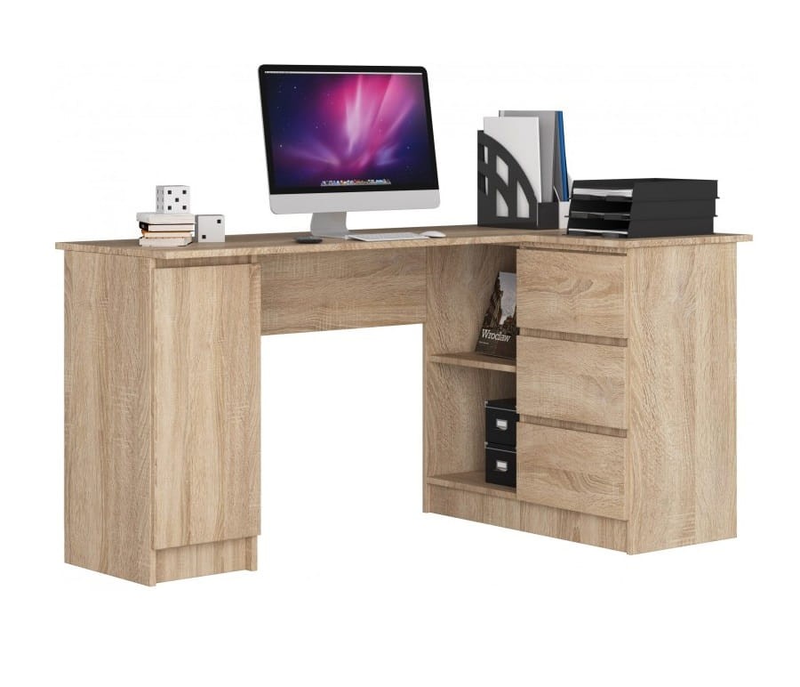 Młodzieżowe biurko narożne z szufladami sonoma
