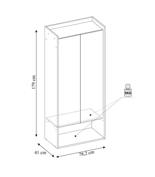 - Wymiary: wysokość - 179 cm, szerokość - 78 cm, głębokość - 41cm