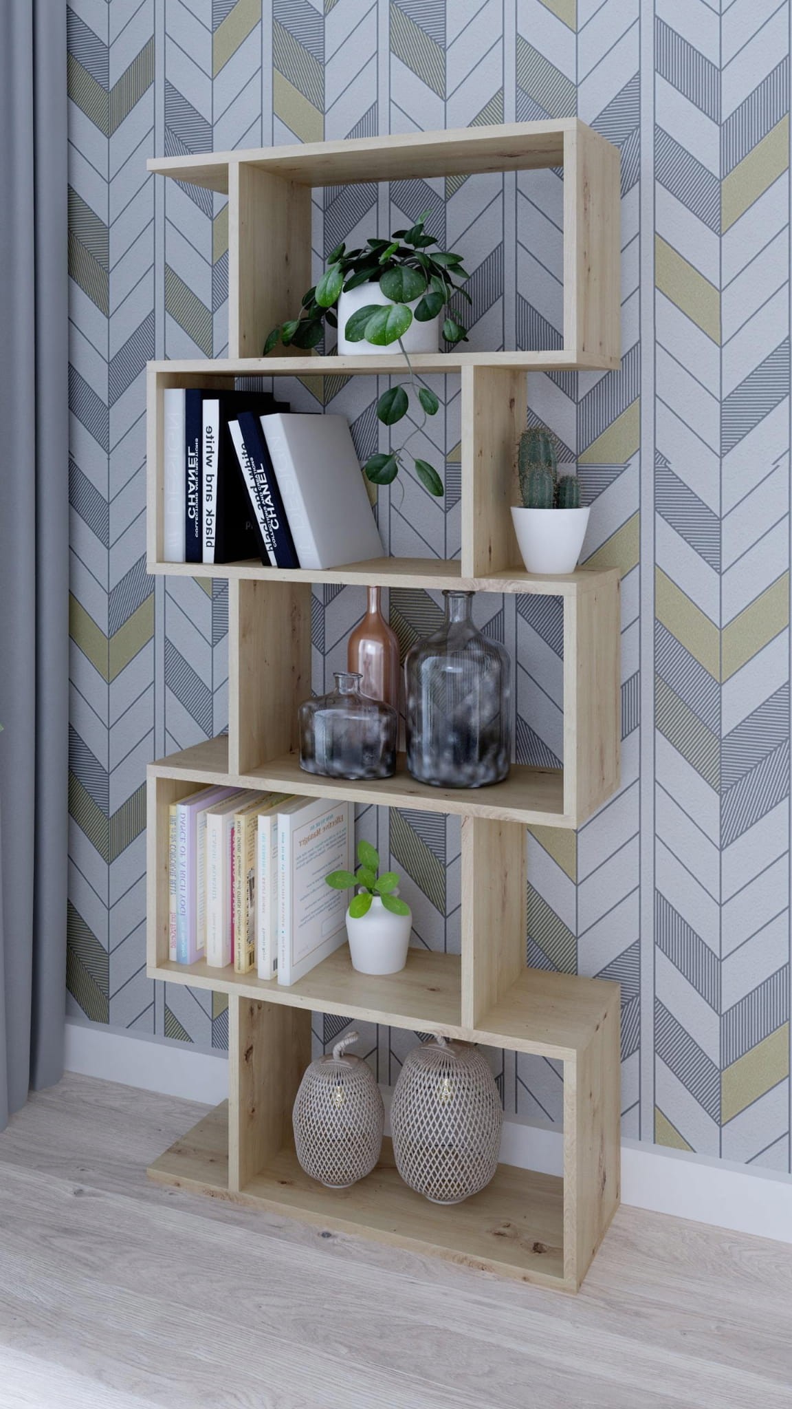 Modułowy regał z asymetrycznymi półkami dąb artisan