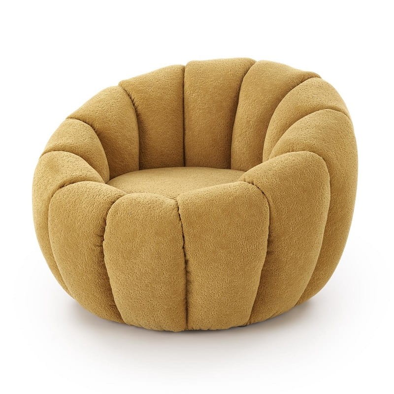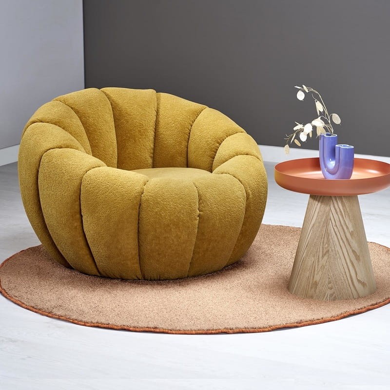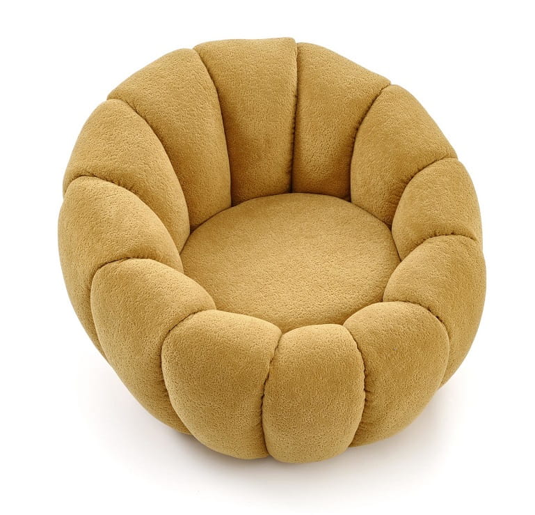 Musztardowy fotel do salonu okrągły