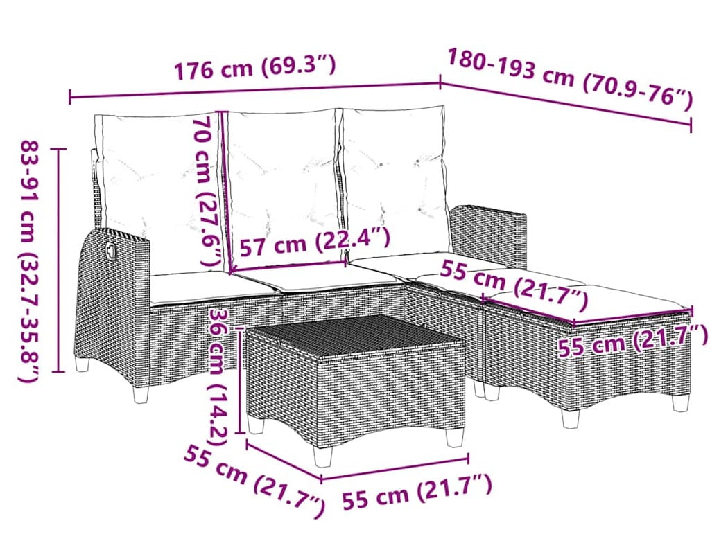 Unikalną cechą narożnika Zibo jest możliwość odchylenia oparcia. To innowacyjne rozwiązanie pozwala na dostosowanie pozycji siedzenia do aktualnych potrzeb – od wyprostowanej, idealnej do popołudniowej kawy i rozmowy, po bardziej odchyloną, sprzyjającą relaksowi i popołudniowej drzemce. To właśnie te przemyślane detale sprawiają, że narożnik ogrodowy Zibo wyróżnia się na tle konkurencyjnych propozycji, oferując nie tylko miejsce do siedzenia, ale prawdziwą przestrzeń do życia. Komplet wypoczynkowy Zibo to nie tylko meble – to inwestycja w jakość spędzanego czasu i komfort Twojej przestrzeni zewnętrznej. To zaproszenie do celebrowania chwil na świeżym powietrzu, do budowania wspomnień w otoczeniu eleganckich, funkcjonalnych mebli. Narożnik ogrodowy ze stolikiem Zibo to obietnica niezapomnianych letnich dni i wieczorów, które pozostaną w pamięci na długo po zakończeniu sezonu.