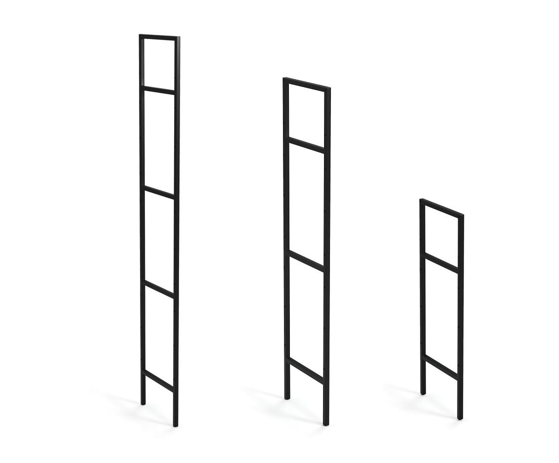 System modułowy Uzo opiera się na stabilnej podstawie, jaką stanowią trzy różne warianty stelaża stalowego, malowanego metodą proszkową. Na ich bazie można stworzyć rozmaite zagospodarowania domowej przestrzeni, przy udziale elementów skrzyniowych.