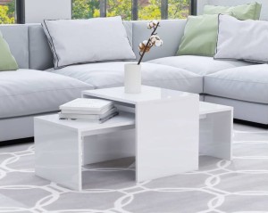 Nowoczesna ława do salonu biały połysk - komplet