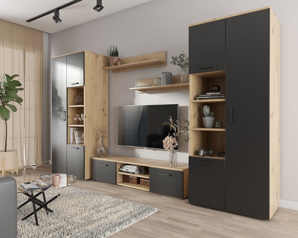 Nowoczesna meblościanka z szafami i stolikiem RTV artisan/czarny