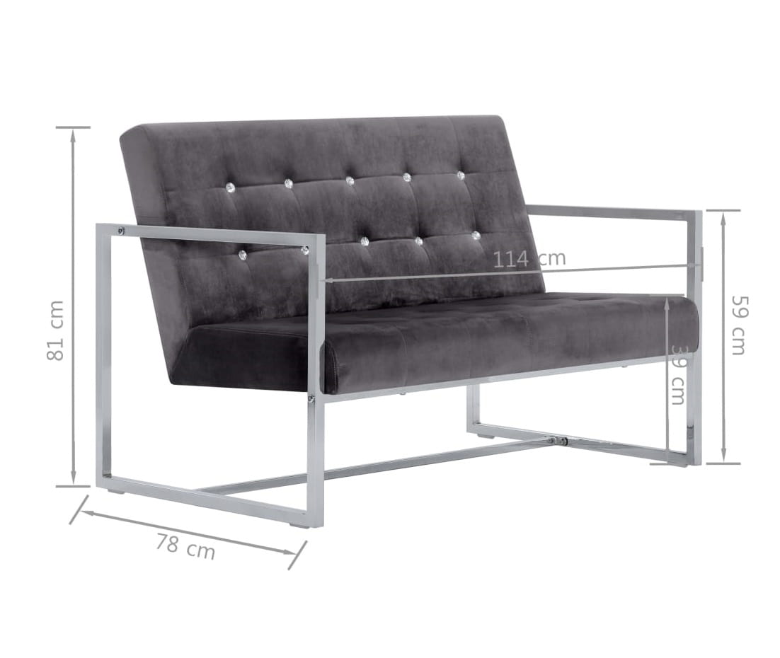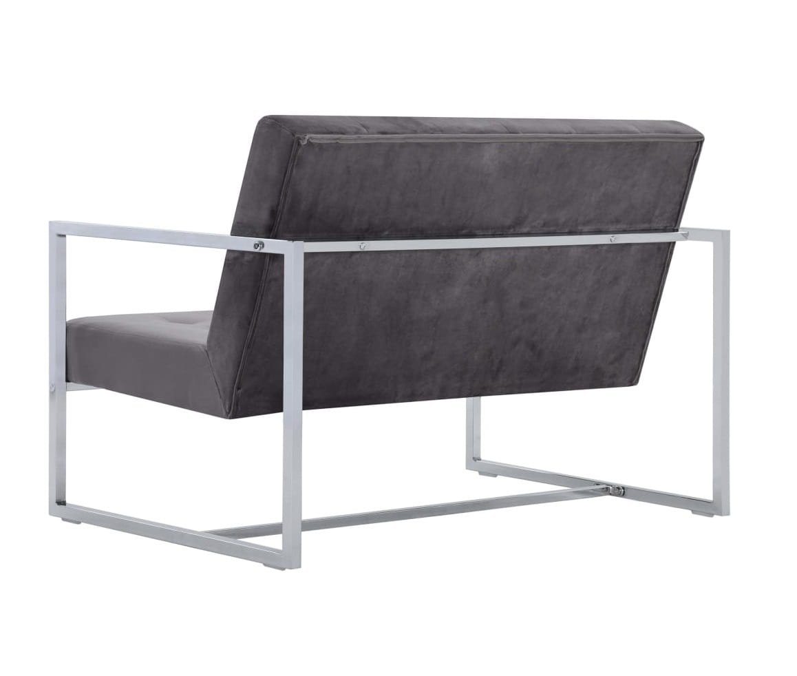Nowoczesna sofa dwuosobowa szary chromowany stelaż loft
