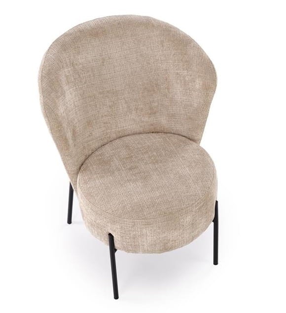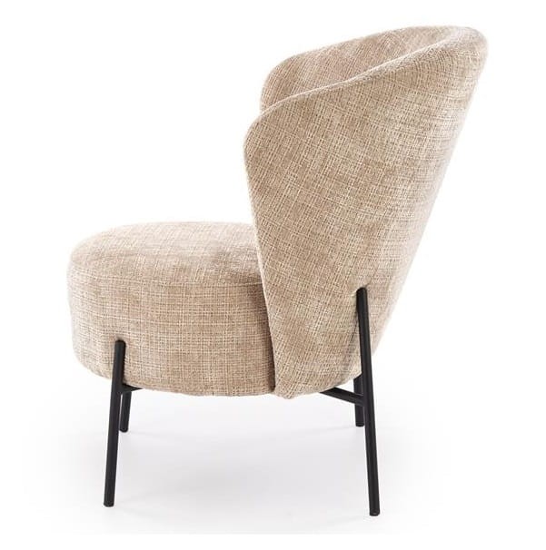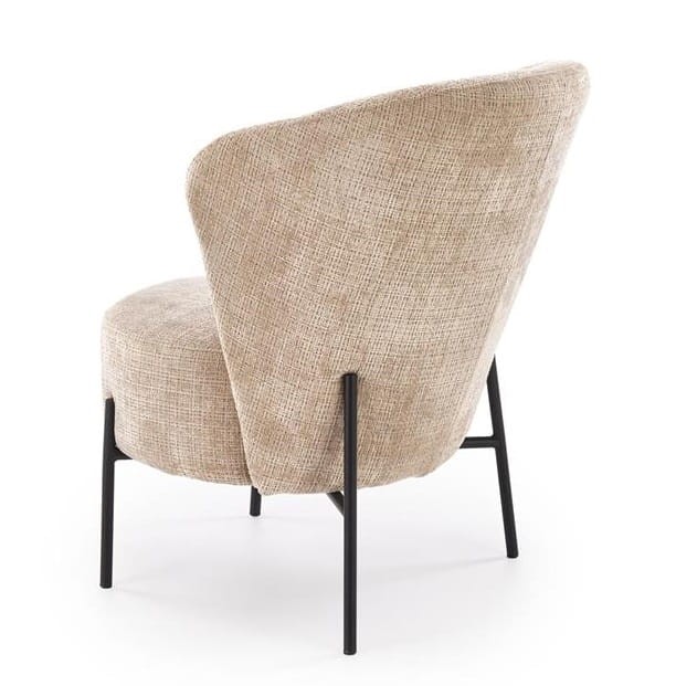 Metalowa podstawa w głębokim, matowym czerni to element, który nadaje całej konstrukcji lekkości i współczesnego charakteru. Te smukłe nóżki nie tylko stabilnie podtrzymują mebel, ale także wprowadzają interesujący kontrast kolorystyczny, który ożywia całość kompozycji. To właśnie dzięki takiemu połączeniu ciepłego beżu z chłodną czernią metalu fotel Cezar zyskuje swój wyrazisty, nowoczesny charakter, który docenią miłośnicy przemyślanego designu.