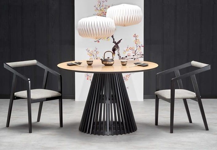 Przyzwyczajeni do modnych ostatnimi czasy minimalistycznych, loftowych i skandynawskich aranżacji wnętrz, odczuwamy chęć wprowadzenia do nich zmian. Takim dobrym sposobem - w jadalni, albo w otwartym na nią salonie jest wprowadzenie interesującego z wyglądu stołu. Takiego, który wpisze się w ogólny nurt industrialny, ale ma w sobie orientalny sznyt, swoiste ciepło. Polecamy Państwa uwadze okrągły stół Nippo.
