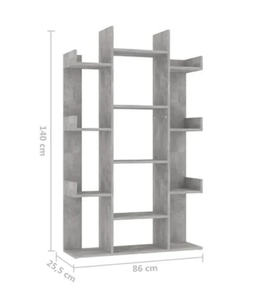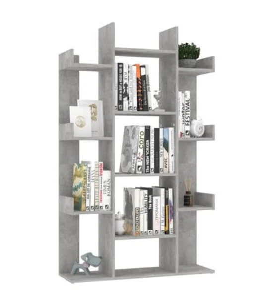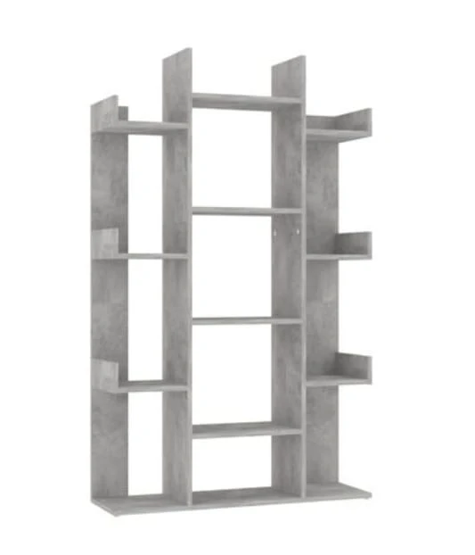 Naszą propozycją jest regał-biblioteczka o nietypowej formie przypominającej kształtem rozłożyste drzewo. Regał na książki Carlo składa się z trzech wyraźnie wyróżniających się części: pięciopiętrowej, szerokiej otwartej szafki stanowiącej pień i dwóch identycznych segmentów z czterema węższymi półkami, które przypominają gałęzie naszego wyimaginowanego drzewa. Mebel wykonany został z płyty meblowej w kolorze szarego betonu. Tego rodzaju wykończenie gwarantuje wysoką odporność powierzchni na uszkodzenia mechaniczne, a także wygodę w codziennym użytkowaniu - do czyszczenia mebla wystarczy jedynie wilgotna ściereczka.