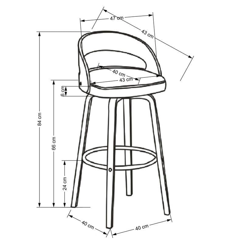 - Wymiary: wysokość - 84 cm, wysokość siedziska - 66 cm, głębokość - 43 cm, szerokość - 47 cm
