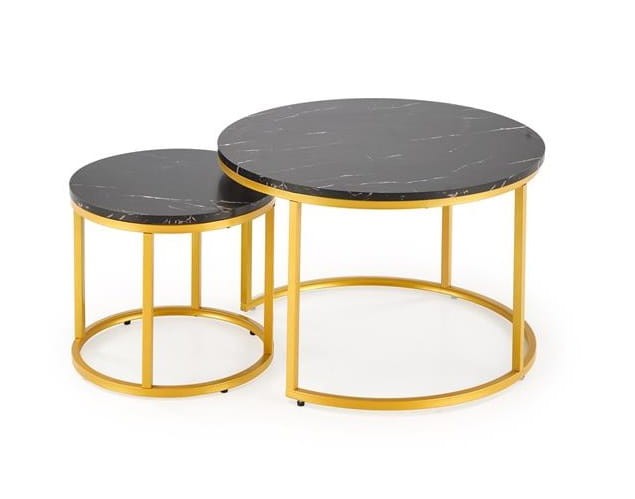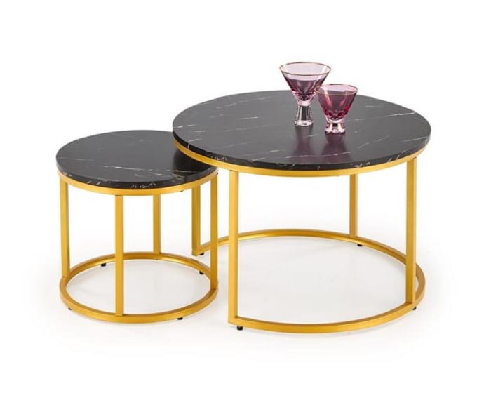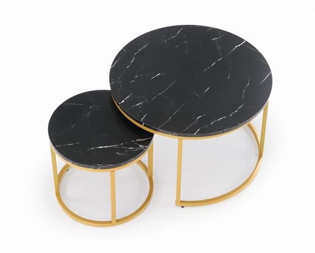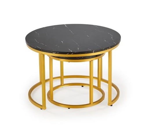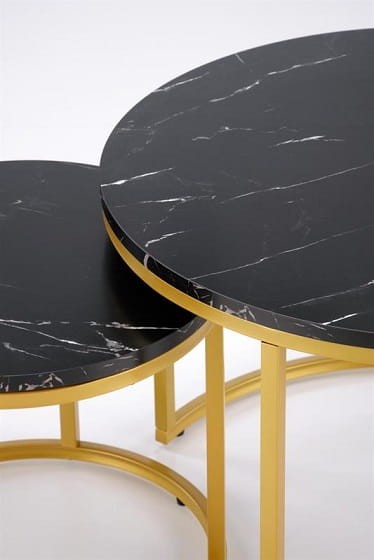 Okrągłe stoliki czarny marmur ze złotym