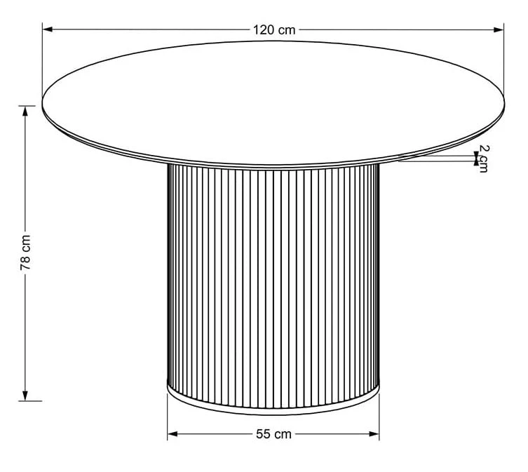 - Wymiary: wysokość - 78 cm, średnica blatu - 120 cm