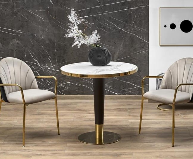 Nurt glamour w designie to świat przepychu, luksusu oraz blasku, a prezentowany model Lumera odzwierciedla te cechy w sposób wyjątkowy. Tutaj okrągły, marmurowy, biały blat nie tylko zapewni niezrównaną atmosferę podczas wspólnych posiłków i spotkań, ale także stanie się błyszczącym centrum uwagi. Złote akcenty nadają mu niepowtarzalnego wdzięku, sprawiając, że okrągły stół w stylu glamour doskonale komponuje się zarówno z ultra nowoczesnymi, jak i klasycznymi aranżacjami.