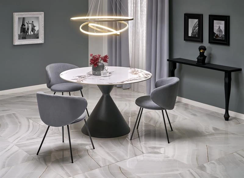 Okrągły blat o średnicy 120 cm, wykonany z wysokiej jakości spieku perfekcyjnie imitującego biały marmur, jest odpowiedzią na potrzeby nowoczesnych, wymagających użytkowników. To powierzchnia, która łączy w sobie wytrzymałość z ponadczasowym pięknem naturalnego kamienia, jednocześnie będąc znacznie bardziej praktyczną w codziennym użytkowaniu. Plamy, zarysowania czy wysoka temperatura nie stanowią już problemu – spiek to materiał stworzony z myślą o intensywnym życiu rodzinnym.