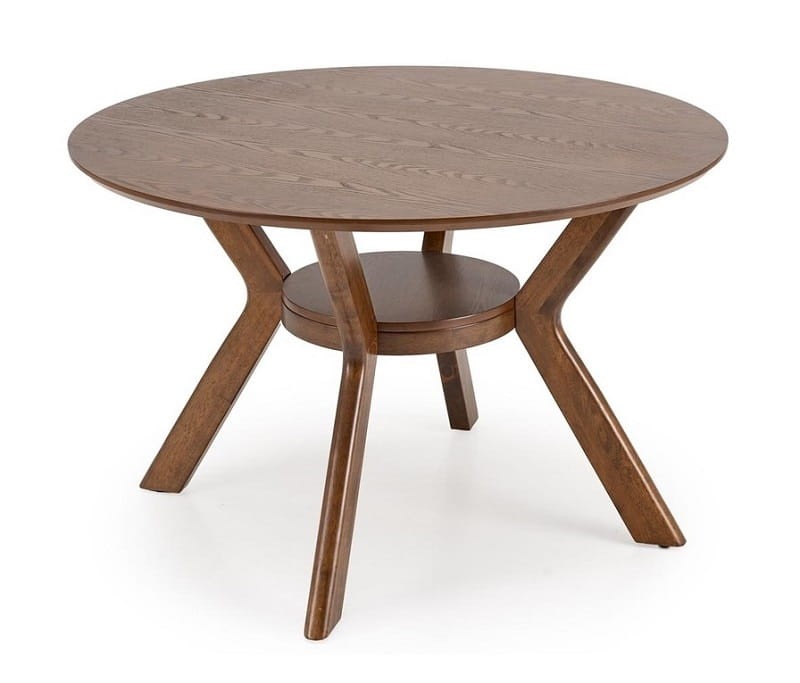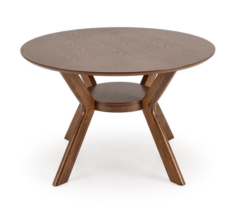 Funkcjonalny stół z okrągłym blatem - elegancka harmonia w orzechowym odcieniu