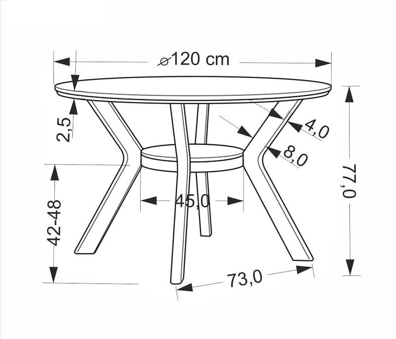 - Wymiary stołu: wysokość - 77 cm, średnica - 120 cm