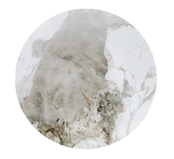 Okrągły stolik we włoskim stylu Mediolan II to stylowa opcja w aranżacji, przeznaczona dla osób, które cenią designerskie rozwiązania w swoim mieszkaniu. Okrągły blat o średnicy 50 cm wykonano z ceramicznego materiału imitującego biały marmur, co nadaje mu bardzo efektownego wyglądu. Natomiast elegancka podstawa została wykonana ze stali malowanej proszkowo na piękny kolor orzechowy ze złotym akcentem. Takie zestawienie kolorystyczne doskonale komponuje się z szykownym wystrojem wnętrza, nadając pomieszczeniu wyjątkowego charakteru.